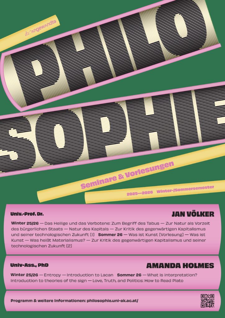 Philosophie Lehrveranstaltungen Philosophie Lehrveranstaltungen 8. Oktober 2025 Mag. Petra Bockenauer-Preinfalk Seminare und Vorlesungen im Wintersemester 2025/26 und Sommersemster 2026: